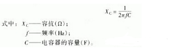 电容器对交流电有特殊的电阻特性,称为容抗。容抗可由下式算出,即