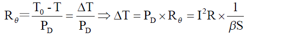 达到热平衡时容器中心温度T0 和环境温度T 的温升由散热方式(空气散热、容器散热)和耗散功率PD 决定,用热阻来描述,热阻(Thermal Resistance)Rq ,单位(℃/W):