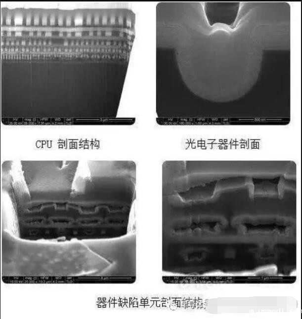 1. 聚焦离子束(FIB),由离子源,离子束聚焦和样品台组成。利用电镜将离子聚焦成微波尺寸的切割器。聚焦离子束的细微精准切割,结合扫描电镜的高分辨率成像,可以很好地解决剖面问题,定位精度可以达到0.1um以下,同时剖面过程过集成电路爱到的应力很小,完整地保存集成电路。2. 扫描电子显微镜(SEM),利用聚焦离子束轰击器件面表,面产生许多电子信号,将这些电子信号放大作为调制信号,连接显示器,可得到器件表面图像。透射电子显微镜(TEM),分辨率可以达到0.1nm,透射电子显微镜可以清晰地分析器件缺陷,更好地满足集成电器失效分析对检测工具的解析要求。