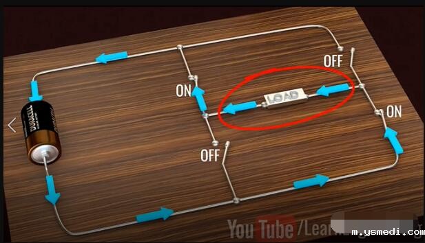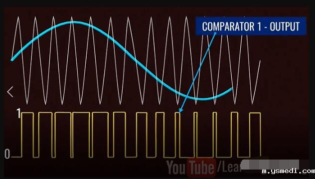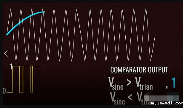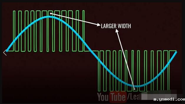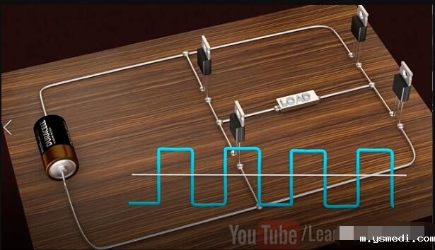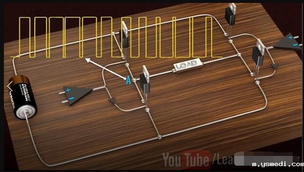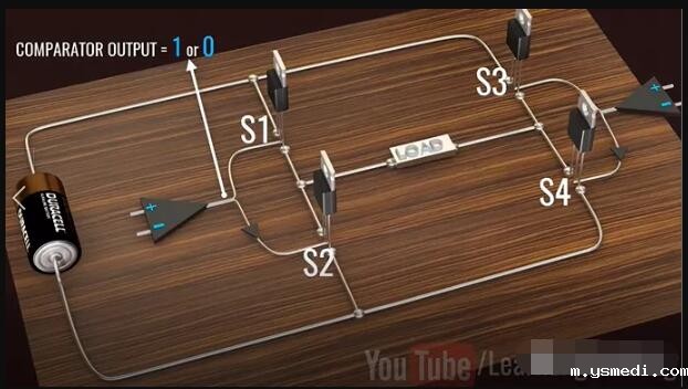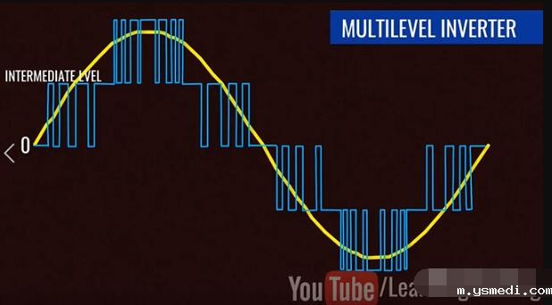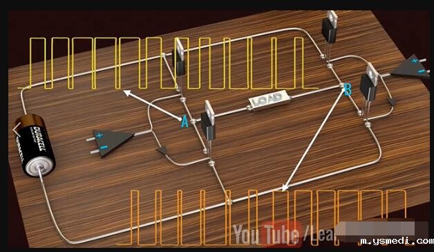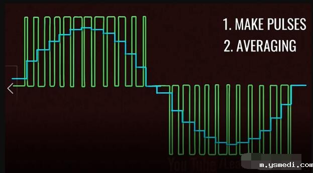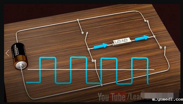 ??Inverters have taken a prominent role in the modern technological world due to the sudden rise of electric cars and renewable energy technologies. 由于电动汽车和可再生能源技术的突然兴起,逆变器在现代技术世界中扮演了重要角色。 ?? Inverters convert DC power to AC power, they are also used uninterrupted power supplies, control all of electrical machines and active power filtering. This video will explain how to get a pure Sinusoidal electric power output from DC power input, in a step by step logical manner. 逆变器将直流电转换为交流电,这一过程可以为电机工作和有功功率的转换提供不间断的电源。这个视频将逐步讲解如何从DC电源输入中获得纯正弦电源的输出。 ??Alternating current periodically reverses its direction. For this reason, the average value of an alternating current over a cycle will be zero. Before proceeding to sine wave production, let's see how a square wave alternating current is produced. In fact, the old type inverter is used to produce simple square wave as their output. 交流电会周期性地反转其方向。因此,整个周期内交流电的平均值为零。在进行正弦波介绍之前,让我们看看如何产生方波交流电。 实际上,旧式逆变器通过产生简单的方波作为其输出的。 ?? Let's build an interesting circuit as shown with four switches and one input voltage. This circuit is known as full bridge inverter. 让我们构建一个有趣的电路,如图所示,其中包含四个开关和一个输入电压,该电路称为全桥逆变器。 ?? The output is drawn between points A and B. To make this circuit analysis easier, let's replace this actual load with a hypothetical load. Just note the current flow when switches S1 and S4 are on, and S2 and S3 are off. 输出在点A和点B之间绘制,为了简化此电路分析,让我们用一个假设负载替换此实际负载。当开关S1和S4接通,而S2和S3关断时,注意此时电流流向。 ?? Now just do the reverse and observe the current flow. It is clear that the current flow is the opposite in this case, as is the output voltage across the load. This is the basic technique that produces a square wave alternating current. 现在,只需进行相反的操作并观察电流。显然,在这种情况下,电流流动是相反的,负载两端的输出电压也是如此。以上,就是产生方波交流电的基本原理。 ?? We all know that the frequency of the AC supply available in our homes is 60 Hz. This means that we need to turn the switch on and off 120 times in a second, which is not possible when manually or by using mechanical switches. 我们都知道,我们家中可用的交流电源的频率为60 Hz。这意味着我们需要在一秒钟内将开关打开和关闭120次,这在手动或使用机械开关时是不可能的。 ?? We introduce semiconductor switches, such as Mosfet for this purpose. They can turn on and turn off thousands of times per second. With the help of control signals, we can turn transistors on or off very easily. 为此,我们引入了半导体开关,例如MOSFET。它们每秒可以打开和关闭数千次。借助控制信号,我们可以非常轻松地打开或关闭晶体管。 ?? The square wave output is a high approximation of sine wave output. Old inverter is used to produce them. That's why you hear a humming noise when you run your electric fan or other appliances using square wave power. They also heat up electric equipment. 方波输出是正弦波输出的高度近似,而老的控制器一般产生的是方波电流。这就是为什么在使用方波电源运行电风扇或其他设备时听到嗡嗡声的原因,此外,它们还会加热电气设备。 ?? Modern inverters produce pure sinusoidal output. Let's see how they achieve it. 然而,现代的逆变器输出的是正弦电流,下面让我们看看他们是如何实现的? ?? A technique called Pulse Width Modulation is used for this purpose. 为此,使用了一种称为脉冲宽度调制的技术。 ?? The logic of Pulse Width Modulation is simple. Generate the DC voltage in the form of pulses of different widths. In regions where you need higher amplitude, it will generate pulses of larger width. The pulses for the sine wave look like this. 脉冲宽度调制的逻辑很简单。以不同宽度的脉冲形式产生直流电压,在需要更高幅度的区域中,它将生成更大宽度的脉冲。正弦波的脉冲看起来像这样: ?? Now here is the tricky part, what will happen if you average these pulses in a small time interval. You will be surprised to see that the shape of the average pulses looks very similar to the sine curve. The finer the pulses used, the better shape the sine curve will be. 这里面最有技巧的一部分是:如果在较短的时间间隔内,对这些脉冲求平均,会发生什么?你会惊讶地发现平均脉冲的形状看起来与正弦曲线非常相似。使用的脉冲越精细。正弦曲线的就形状越好。 ?? Now, the real question is how to make these pulses and how do we average them in a practical way? Let's see how they are implemented in an actual inverter. 现在真正的问题是:如何产生这些脉冲,以及如何以将其在实际中应用? 让我们看看如何在实际的逆变器中实现它们。 ?? Two comparators are used for this purpose. Comparators compare a sine wave with triangular waves. One comparator uses a normal sine wave, and the other comparator uses an invertion sine wave. 为此使用了两个比较器。比较器将正弦波与三角波进行比较。一个比较器使用正常的正弦波;另一个比较器使用反向正弦波。 ?? The first comparator controls S1 and S2 switches. And the secondcomparator controls S3 and S4. 第一比较器控制S1和S2开关,第二比较器控制S3和S4。 ?? S1 and S2 switches determined voltage level at point A and the other two switches determined voltage level at point B.